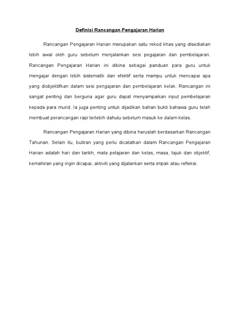 Rancangan pengajaran harian merupakan satu rekod khas yang disediakan oleh guru. Selain itu rancangan pengajaran harian ini merupakan satu garis panduan kepada guru dalam menjamin pencapaian objektif bagi sesuatu sesi pengajaran dan. Rancangan Pengajaran Harian Ts25 Doc.