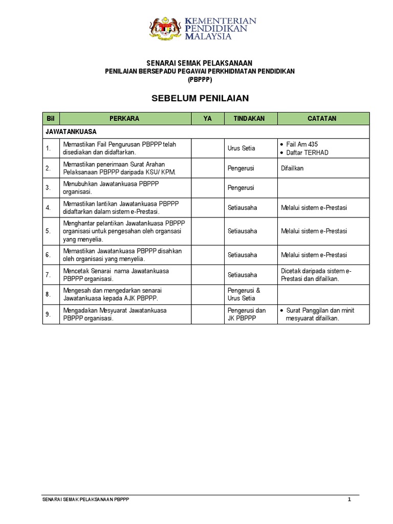 Senarai Semak Pelaksanaan Pbppp