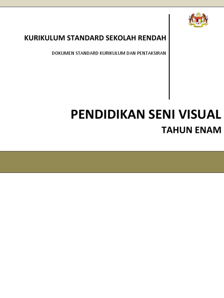 Buku teks digital pendidikan seni visual tahun 6 ini ditulis berdasarkan dokumen standard kurikulum dan pentaksiran dskp tahun 6. Panduan pengajaran kssr pendidikan seni visual tahun 6 1. Bahasa Melayu BM Bahasa Inggeris English Matematik Mathematics Sains Science Bahasa Cina.