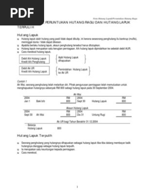 Hutang Lapuk Terpulih Bad Debts Recovered adalah mana-mana bayaran yang dibuat bagi ABT yang telah dihapus kira. Pemahaman apa maksud di setiap 3 nih.