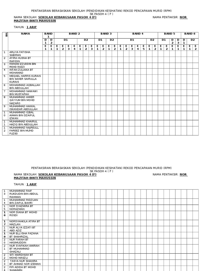 Graf Pencapaian Kelas 2 Guru hanya perlu mengisi helaian MAKLUMAT SEKOLAH dan SENARAI SEMAK sahaja. Borang pentaksiran BI umum Muat Turun. Merancang dan melakukan pergerakan kreatif secara ekspresif.